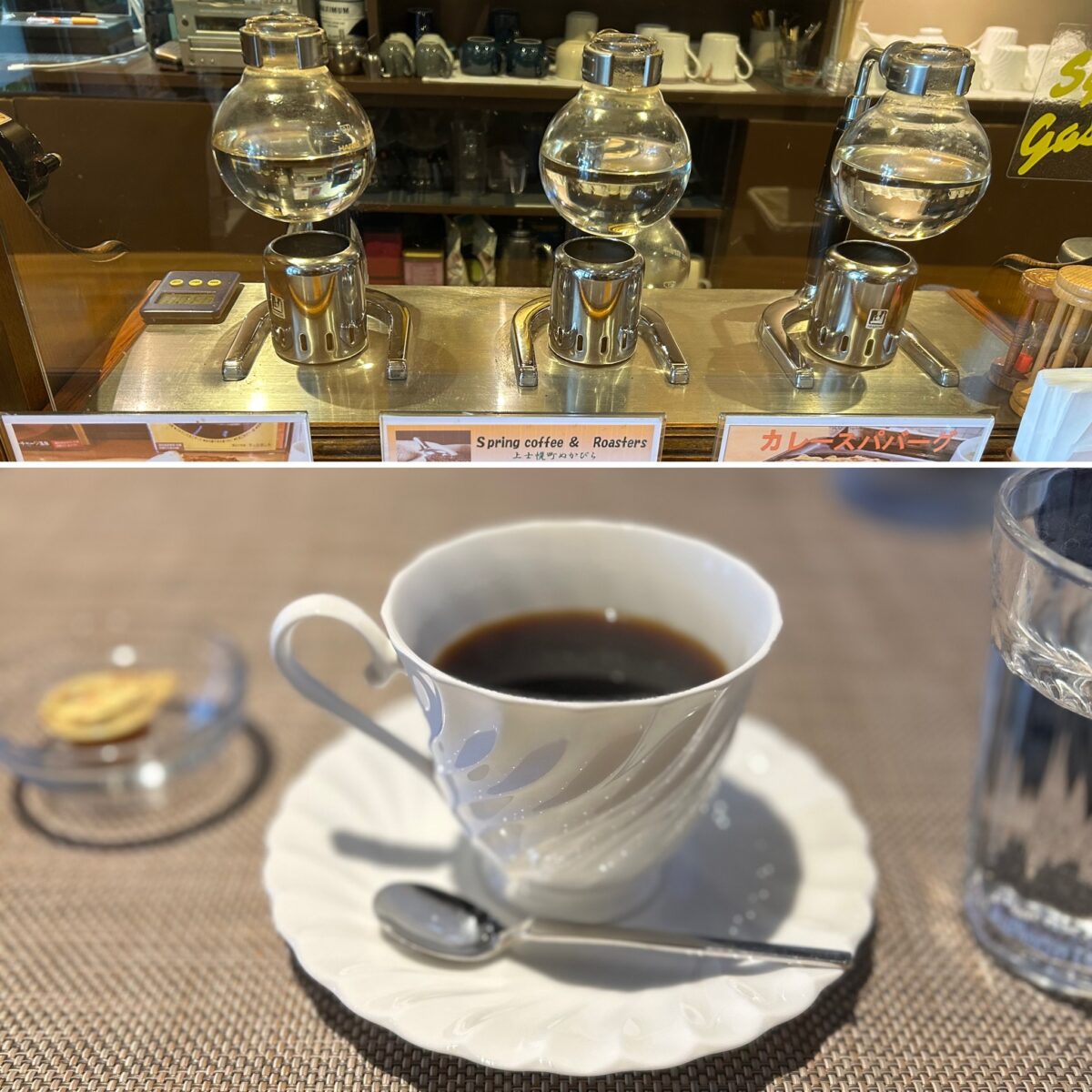 ★ブレンド・深煎り ¥550・・・自家焙煎の珈琲豆をサイフォンで淹れてくれるこだわりコーヒーは深煎りをチョイス!デザートとよく合う✨