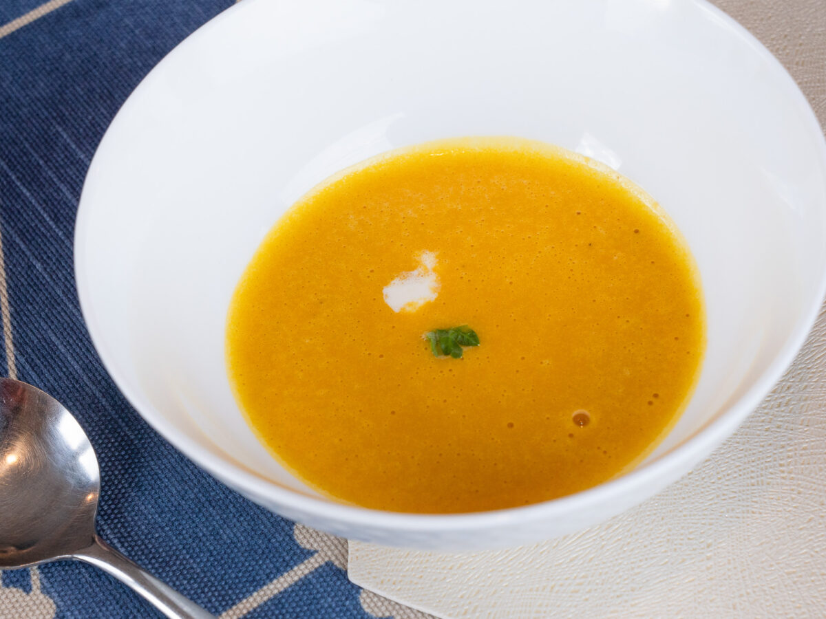 お次はコーンとカボチャのスープ。旬のカボチャがベースのなめらかな舌触り。そこにコーンのやさしい甘さと風味が重なる、オリジナリティあふれる組み合わせ。