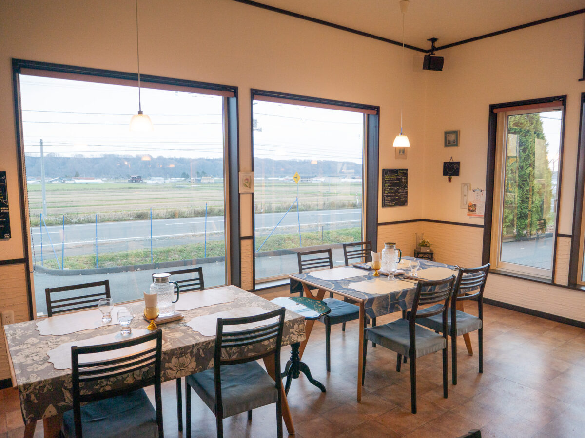 窓が大きく、開放感のある店内。インテリアや食器、お店の隅々までオーナー亜衣さんのおもてなしが行き届いていると感じる空間でした。