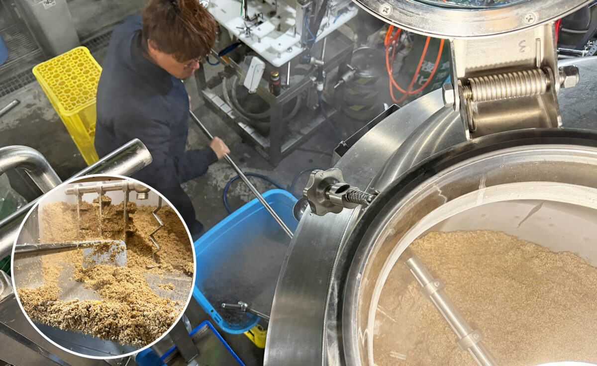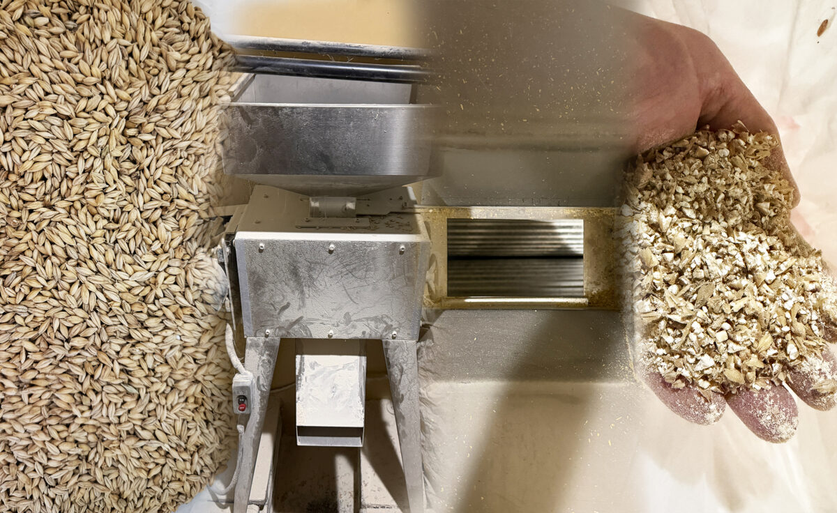 モルト(麦)は液体に溶け込みやすくするため、破砕機で細かく砕きます。この時、どのサイズに破砕するかは、モルトの状態を見て、完成後の味のイメージからの逆算で0.1mm単位で決めます。たぶん。