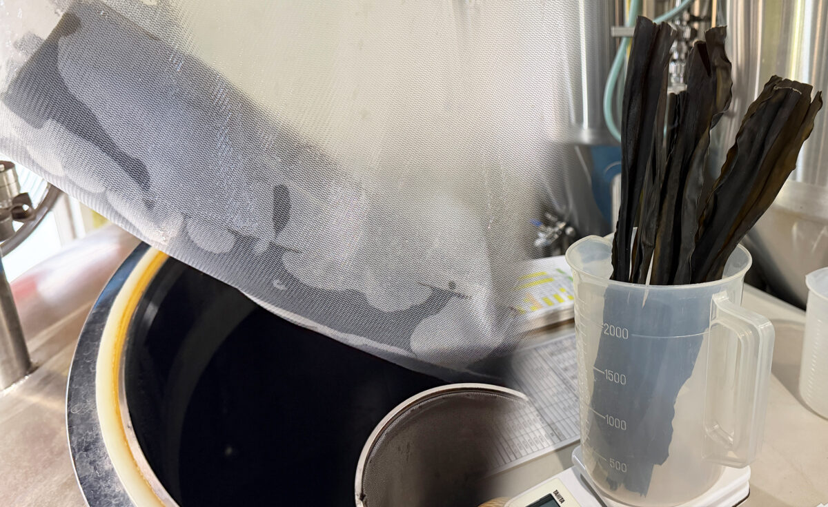 ヒダカミビールではこのタイミングで【昆布出汁】を取って合わせている。最初の水の段階ではなく、キレイに濾過されたモルトエキスに出汁を合わせる事が、一番効率が良いのではないか?と考えている。少なくともMark5を作っている現状までは。