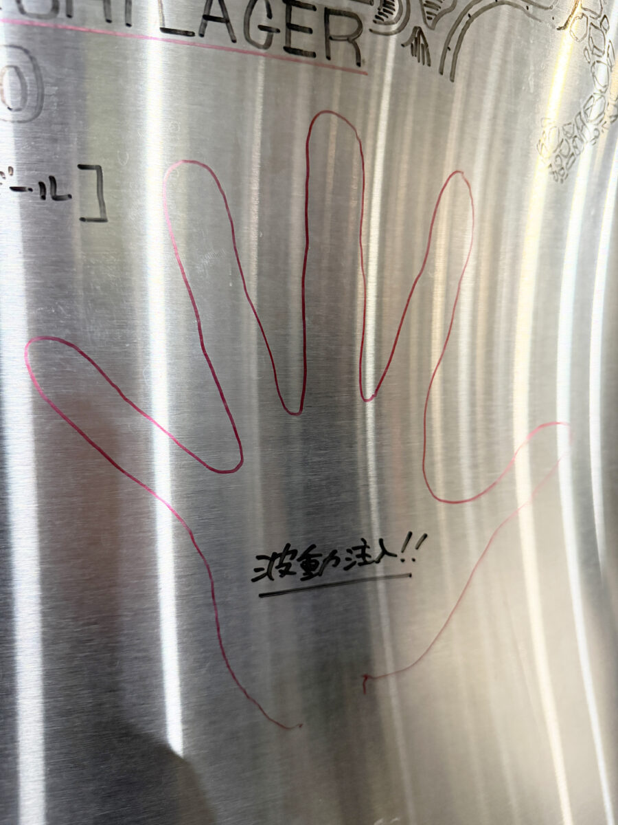 最後は、美味しくなるよう願いを込めて、発酵タンクに絵を描いて〖波動〗を注入。