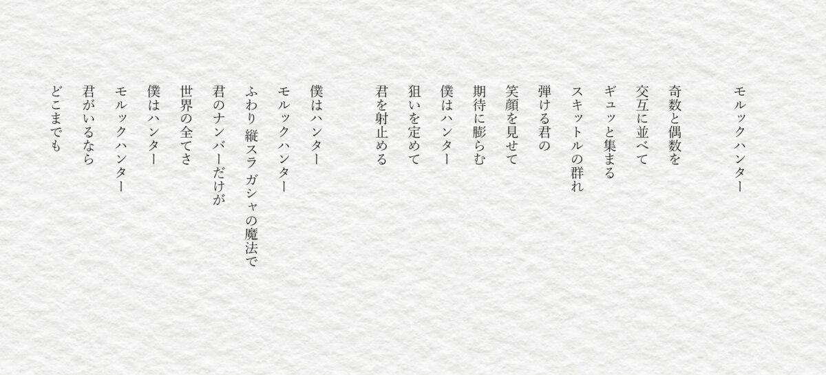佐藤広大:はい。モルックハンターの、ワンコーラスをちょっと朗読をさせていただきます。