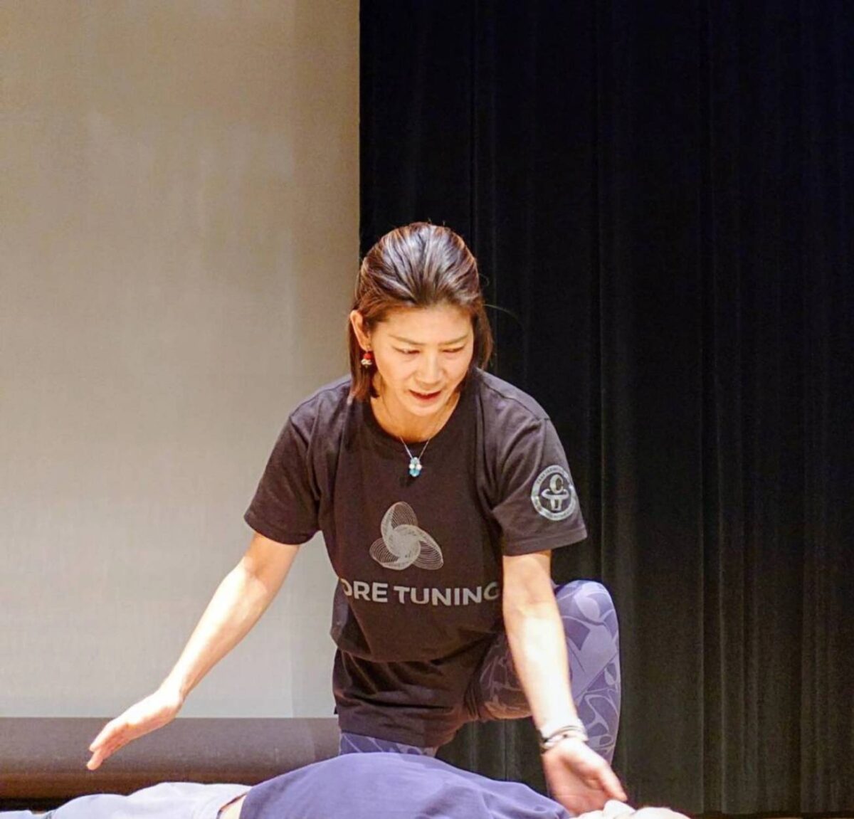 コアチューニングには、自力(セルフ・コアチューニング)と他力(トレーナーによる施術)があり、今回は自力でのコアチューニングをレクチャーしてもらった。