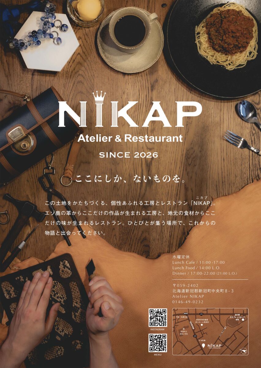 ときおりつうふう:そうなんですよ、僕らの会社、NOBORDER株式会社っていう会社があって、その会社で新冠町で新しく飲食店と僕らがやっているエゾシカレザーだとかアクセサリーなんかのクラフトもやっているので、そのアトリエを併設したレストランを今月2月22日にOPENいたします!