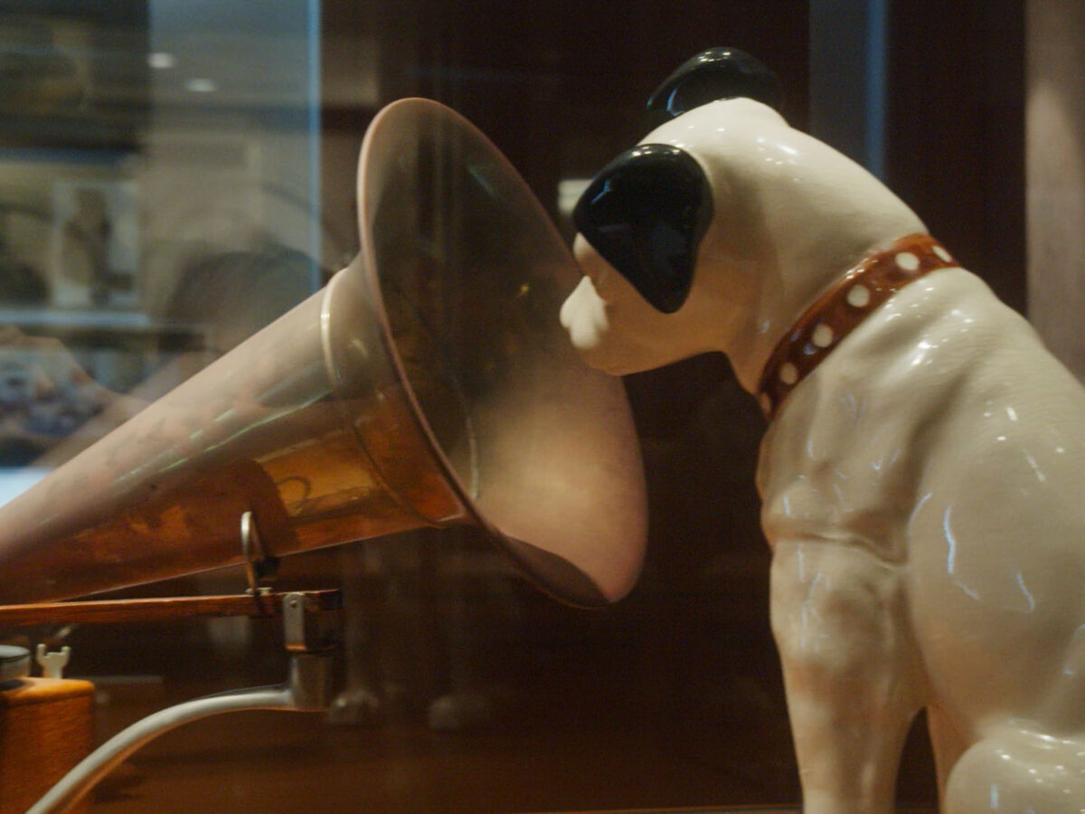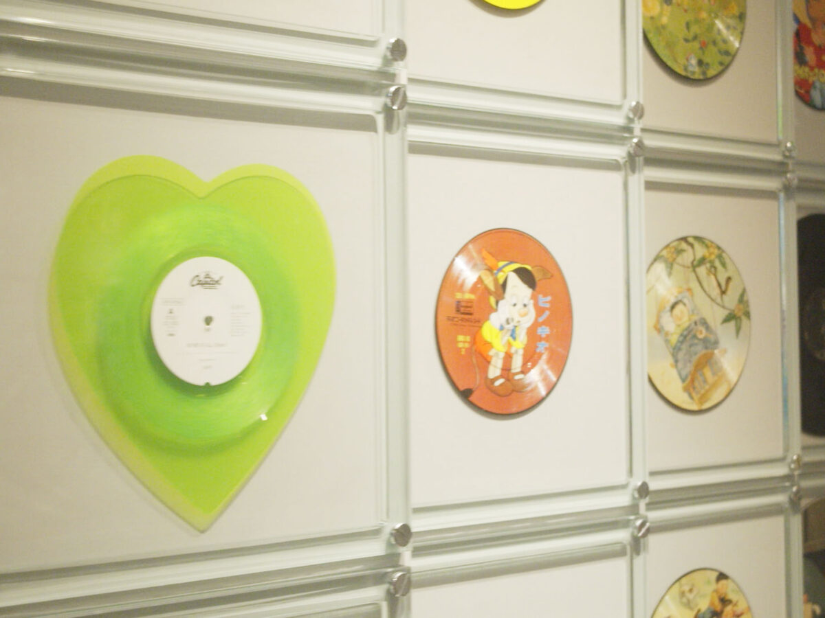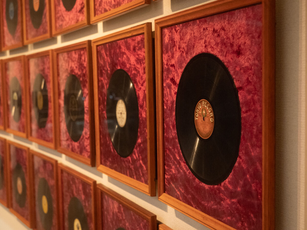 レ・コードプラザにはレコードジャケットや歴史的に貴重なディスクが展示されています。額装されたディスクのラベルを見てみると…