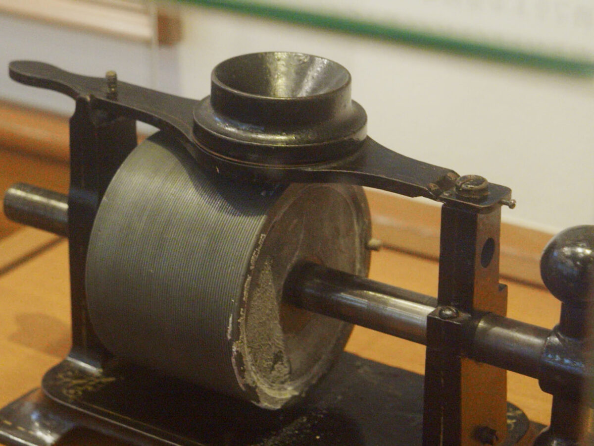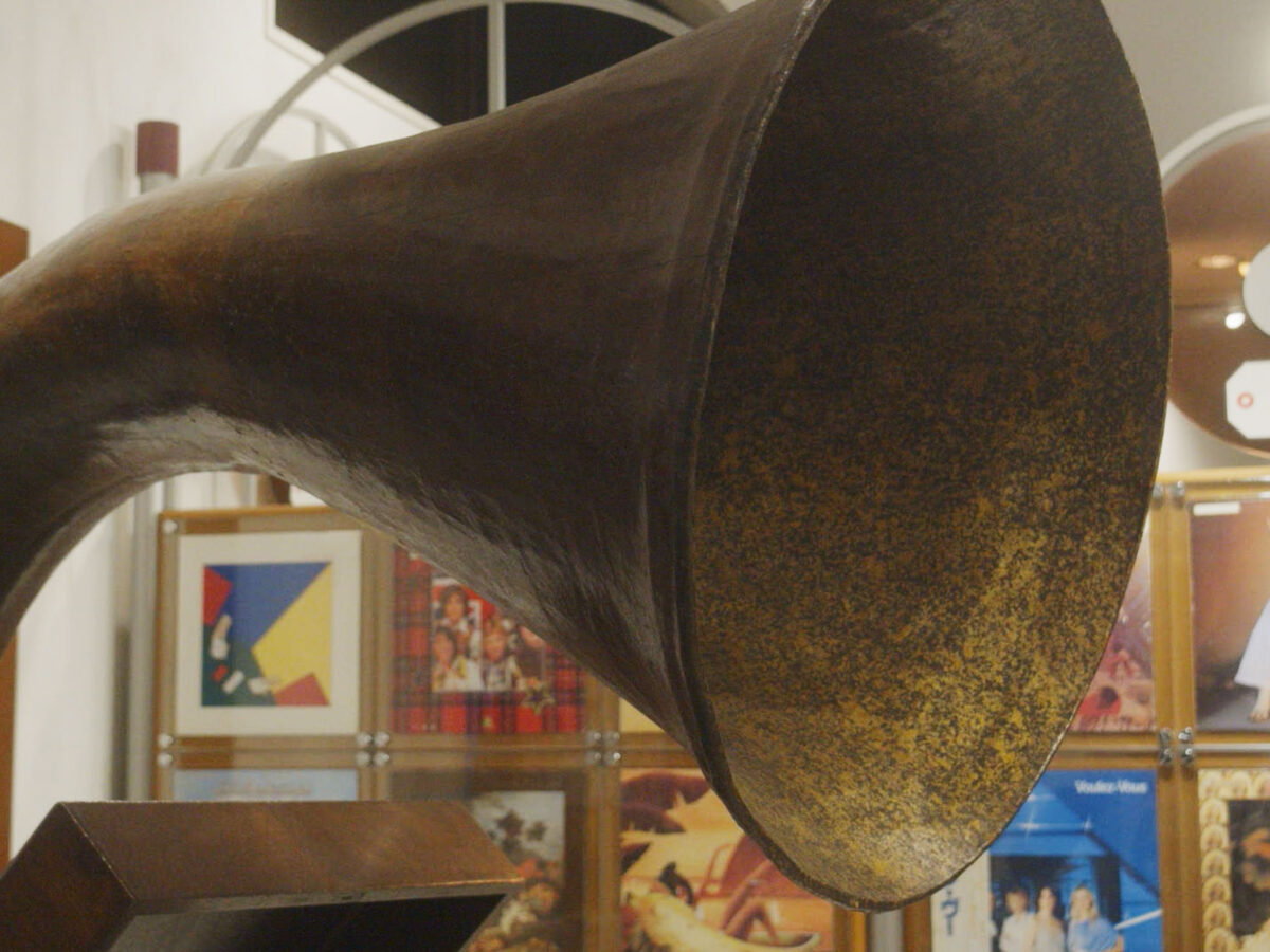 有料の展示スペース「レ・コードミュージアム」には、エジソンによる発明からLPレコードに至るまでの、レコードの歴史が展示されています。黎明期の珍しい蓄音機(蝋管、錫箔式)や、レコードの溝を切るカッティングマシーン、世界最大、最小のレコードなど、幅広い資料を見ることができます。