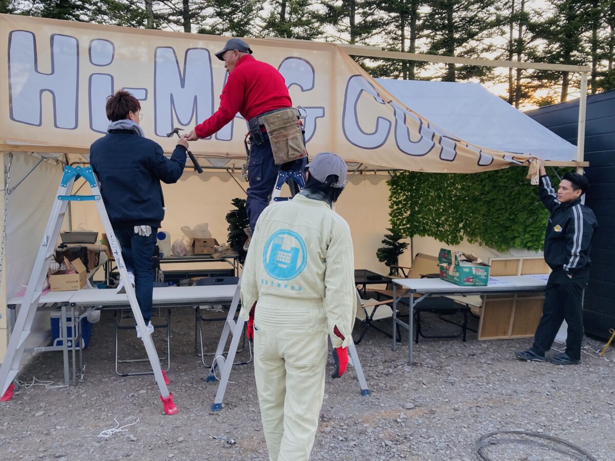 設営の手伝いをしたいけれど、ただ邪魔になるだけだなと思い、車のなかより眺めていました。
