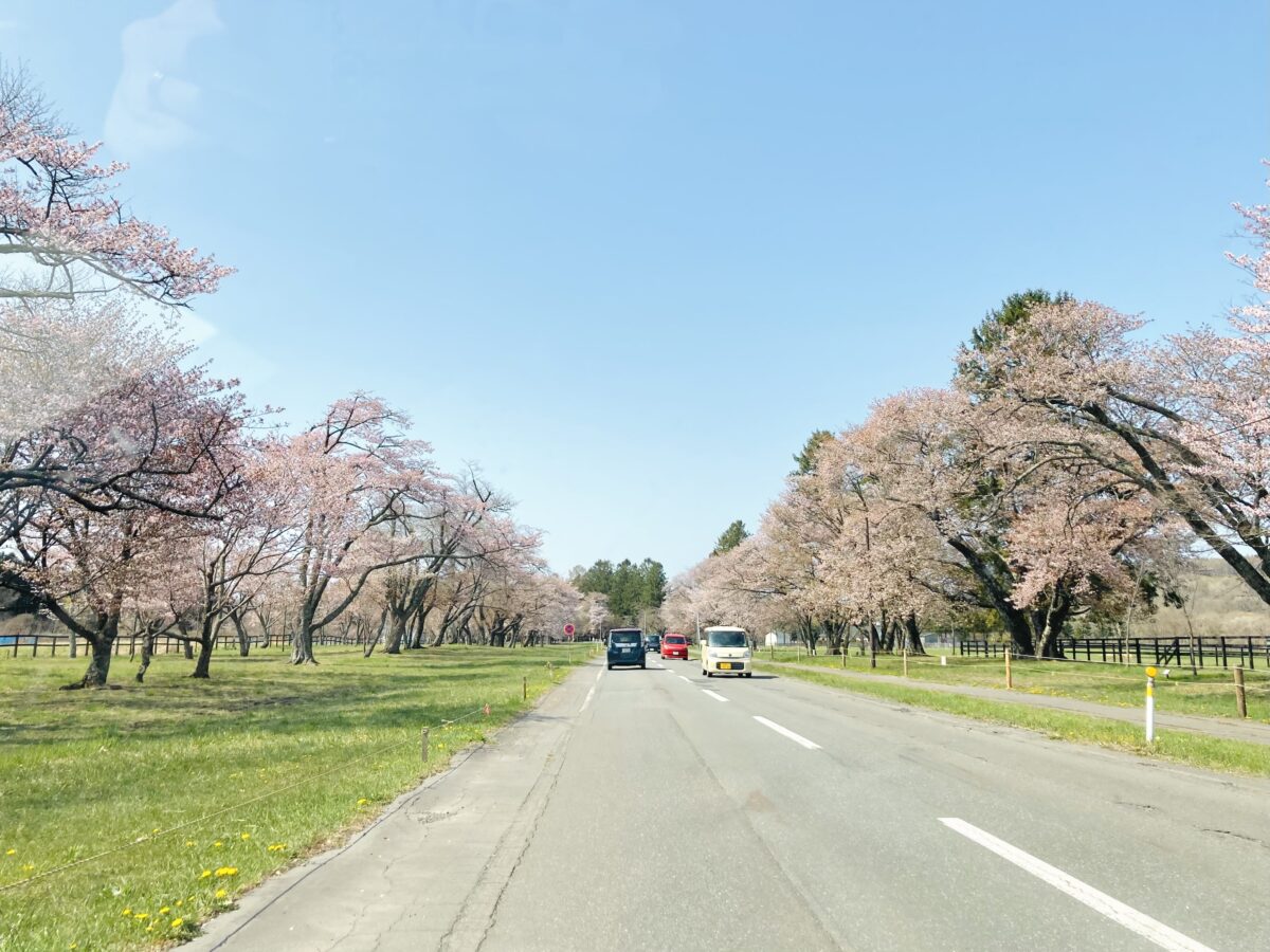 途中の牧場では幼い馬がじゃれあっていて、お馬さんたちも春を楽しんでいる様子。